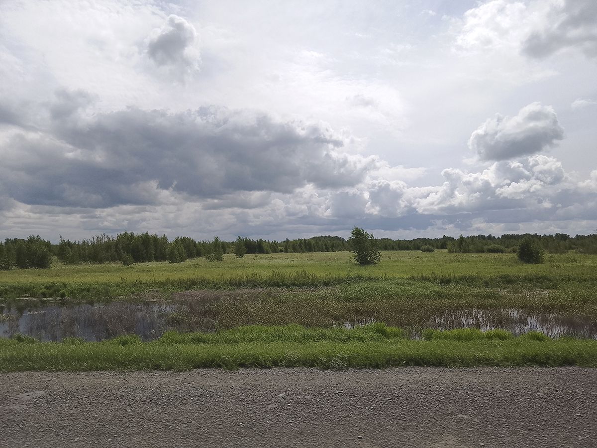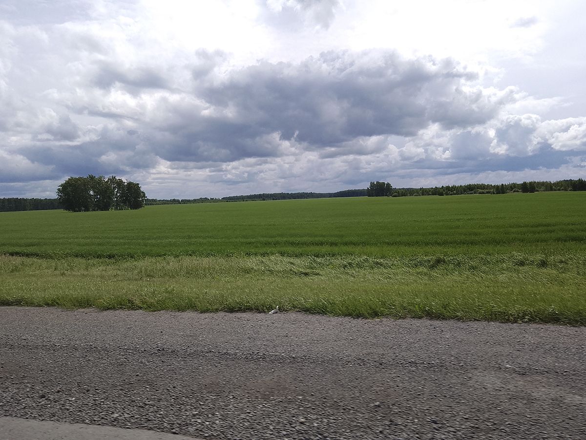 Омская область. До губернского центра чуть больше шестидесяти километров, и казалось бы, бесконечные болота и обломки березняка сменились разноцветными полями. Жёлтые, зелёные и светло голубые. Если жёлтым цветёт рапс, зелень – это пшеница, то что цветёт голубым? Неужели лён? Хотя он кажется поярче. Но не останавливаемся, а просто любуемся сменой палитры. На ходу...