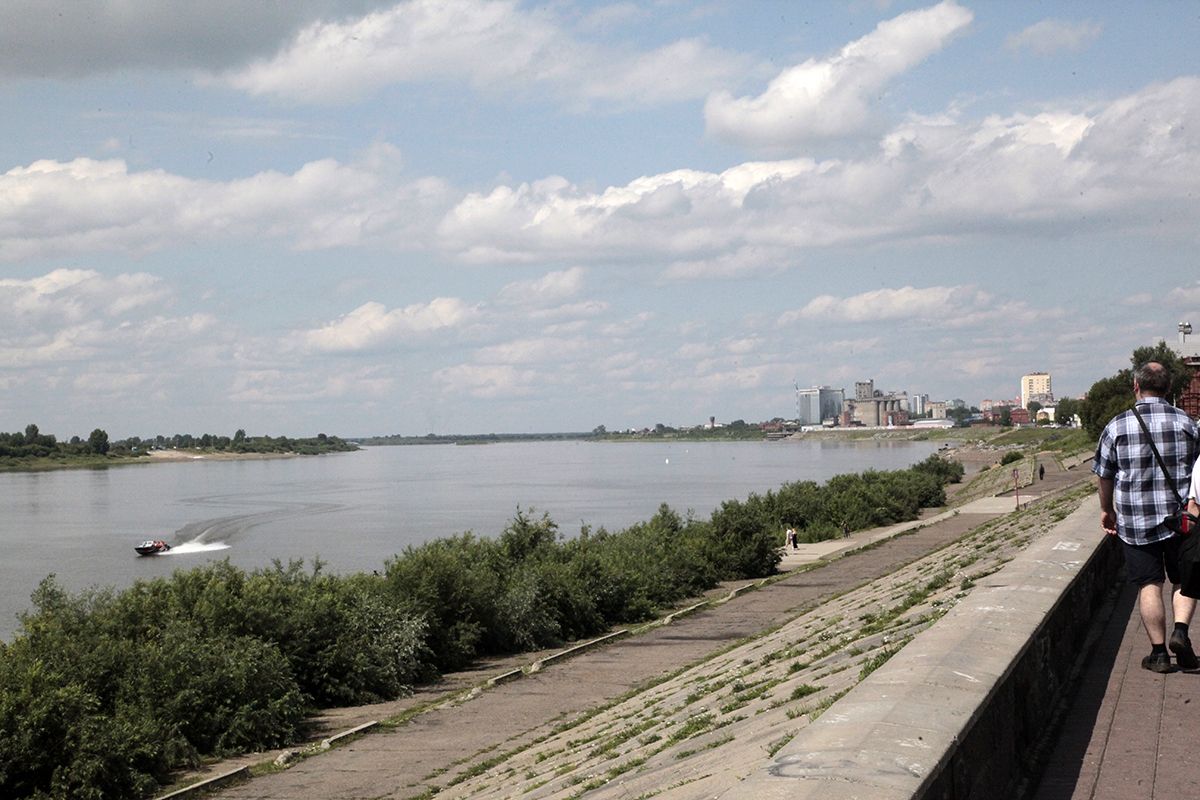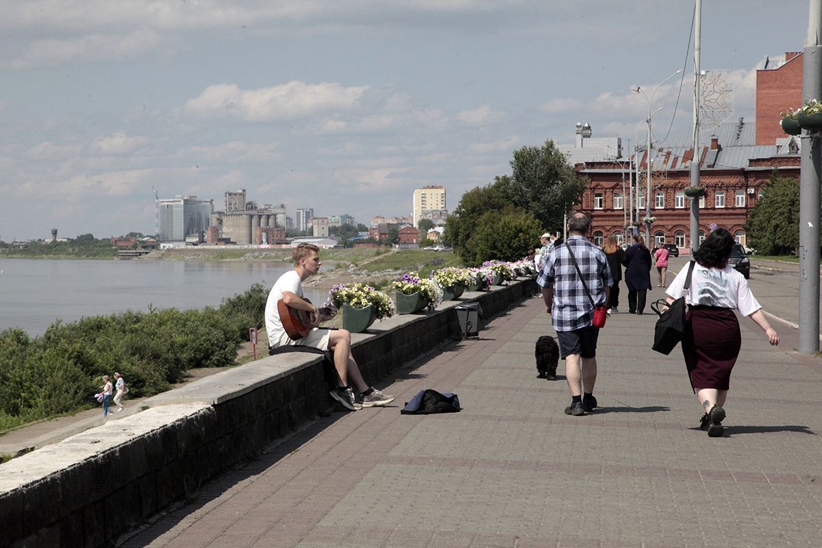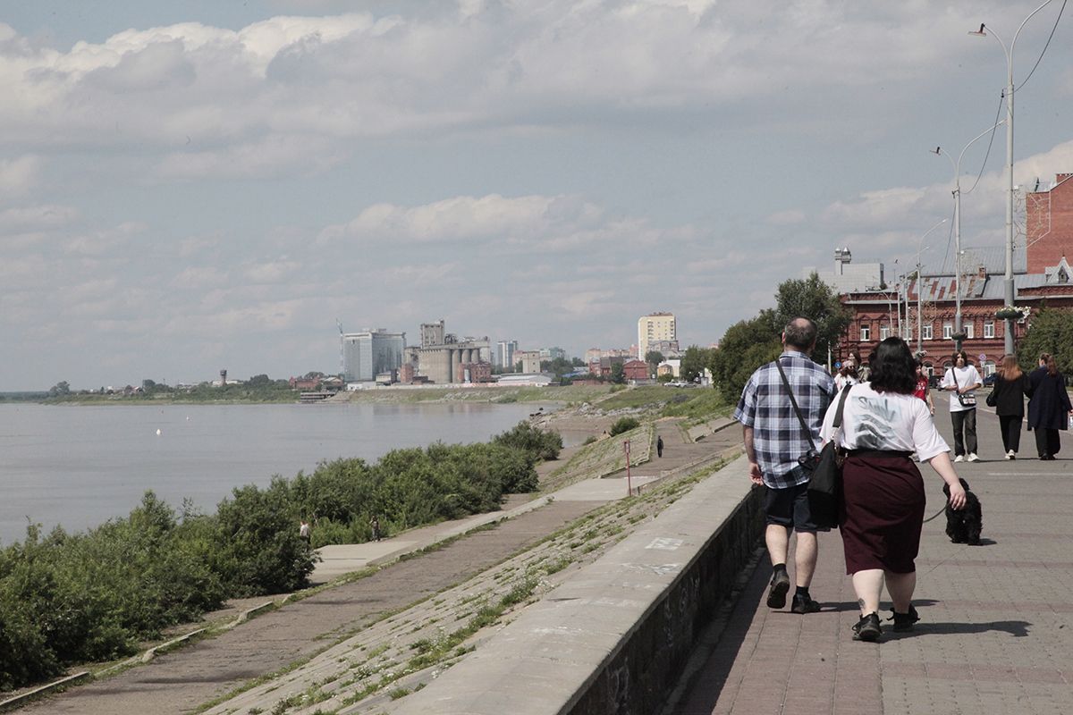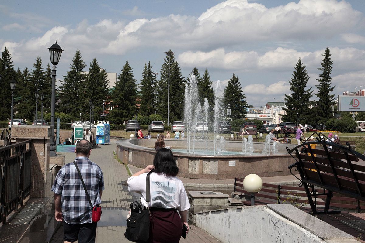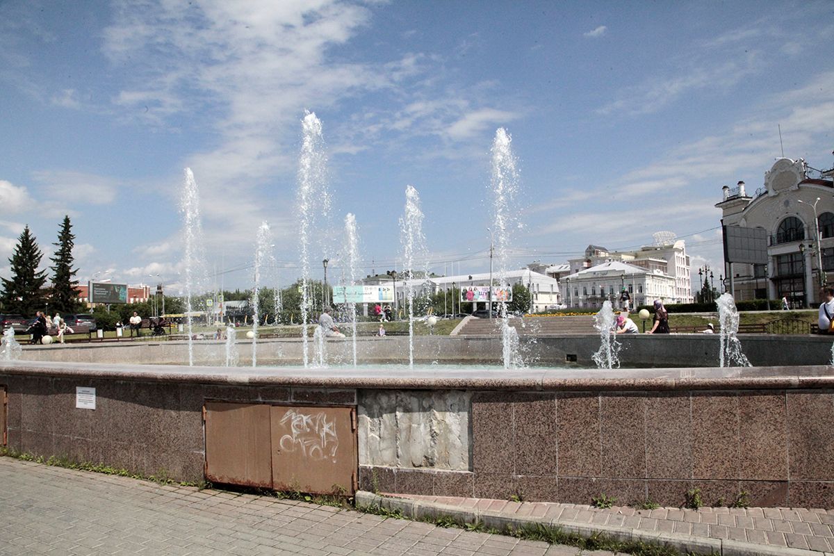 Первая встреча сегодняшнего дня – с потрясающим человеком – Владимиром Михайловичем Костиным на скамейке возле фонтана с видом на набережную голубой ленты Томи.