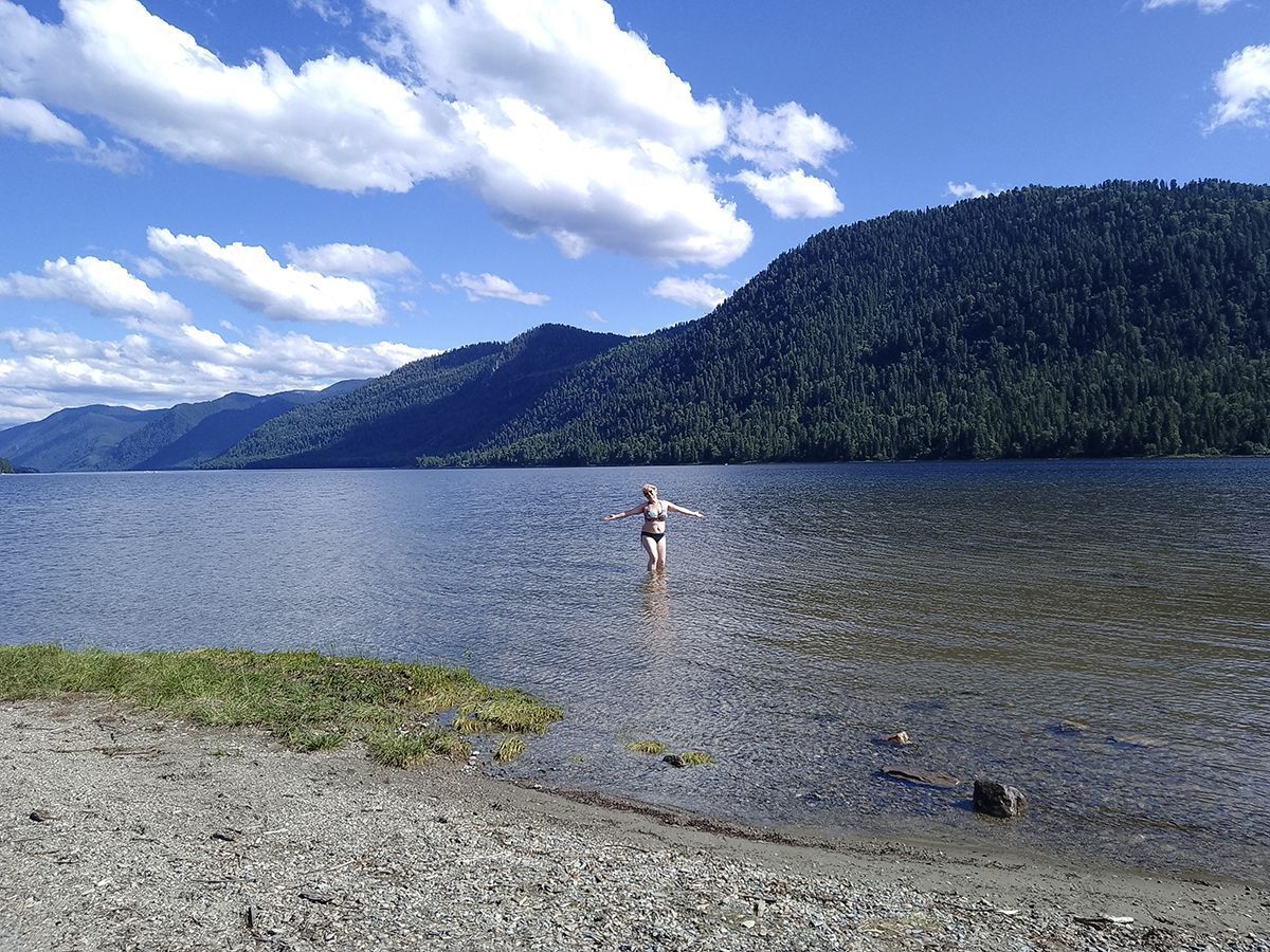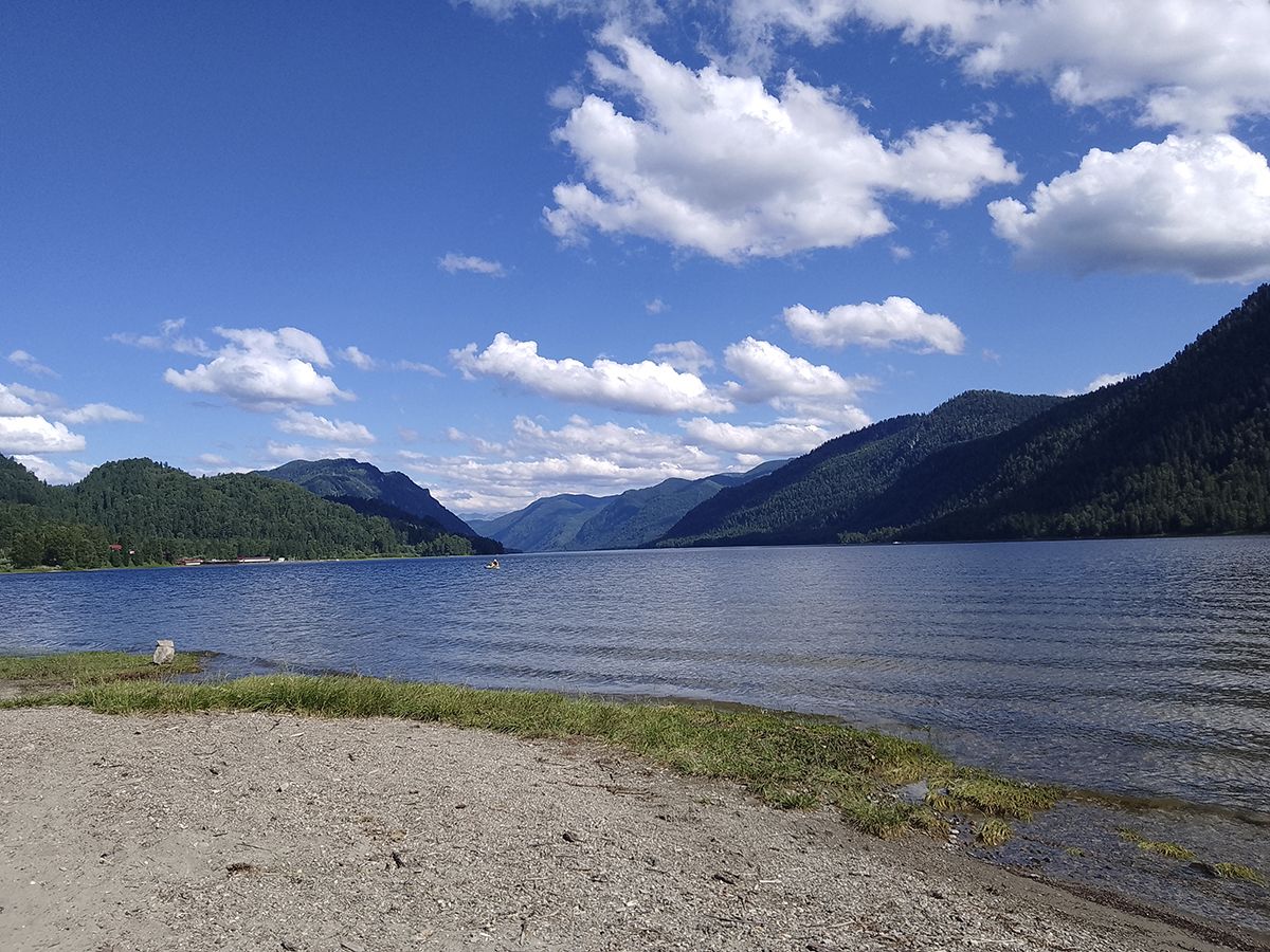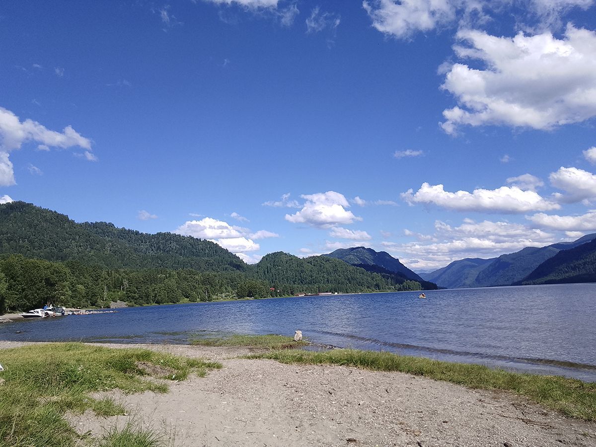 До Артыбаша, посёлка, что растянулся вдоль восточного берега Телецкого озера от его северного окончания, откуда начинает свой путь Бия, мы добрались уже после обеда. Достаточно долго искали место для остановки и по навигатору, и просто выглядывая в окно, одновременно любуясь открывающимися видами озера. Свободное место и прямо рядом с озером нашлось уже за селом на огороженной поляне, аншлаг перед которой сообщил, что это «Вертолётка».