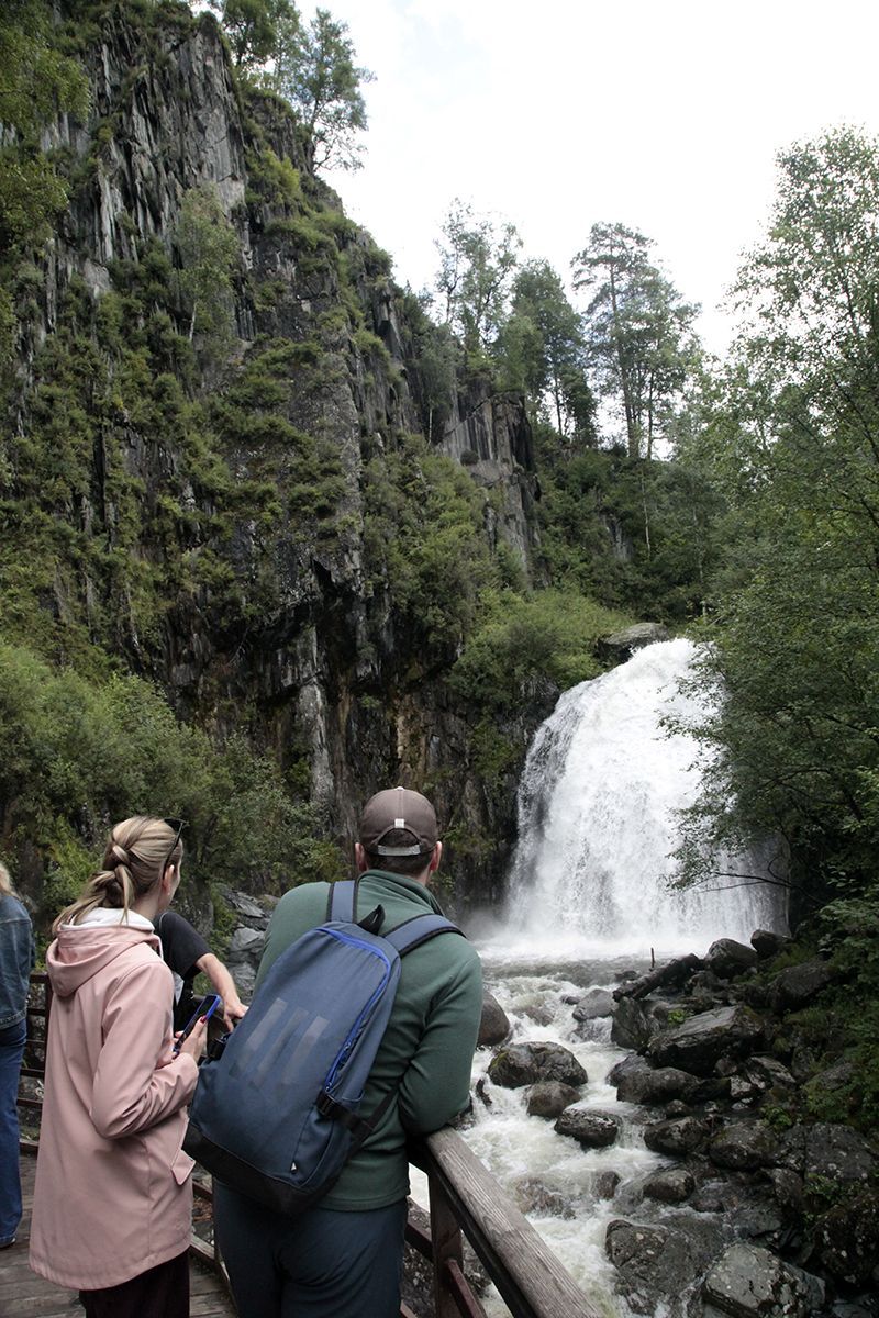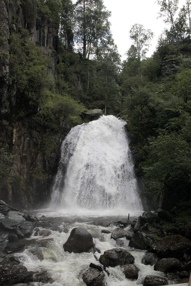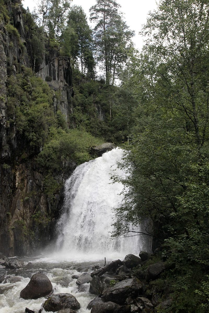 Несмотря на хмурое и почти штормовое небо, мы всё-таки решили не отказываться от запланированной экскурсии по самому Телецкому озеру на небольшом шустром катерочке, который вмещает до 15 человек, с посещением нескольких водопадов. Экскурсия удалась и назвать её можно просто «Вода и камни». Именно они привлекли всё наше внимание и вызвали сумасшедшие эмоции. Духи Алтая в очередной раз благоволили нам, и первые капли запланированного небом дождя упали как раз, когда мы уже садились в микроавтобус, чтобы вернуться после экскурсии от причала к нашему палаточному лагерю.