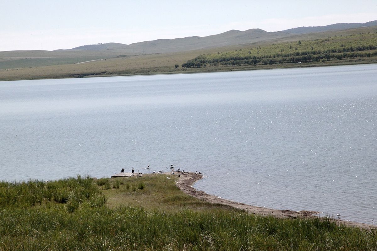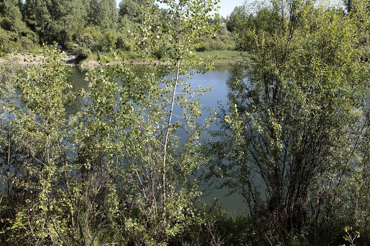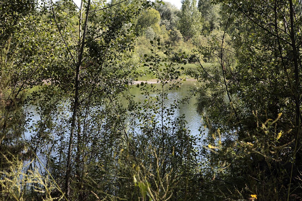 Поехали по подсказке и поняли, что попали в совершенно другое место. По крайней мере разрекламированного водопада не увидели, зато добрались до потрясающего озера, названия которого так и не нашли. Может это и есть бывшее водохранилище от некогда существовавшей здесь ГРЭС? Только поднимаясь к нему, мы шли навстречу вытекающей мелкой и бурной речушки, совсем узенькой, но тоже имеющей свой водопадик.